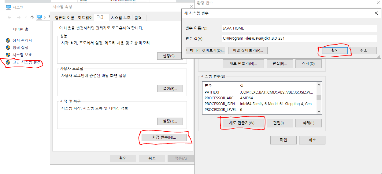 내 컴퓨터 우클릭 후 속성 -> 고급시스템설정 -> 환경변수 -> 새로만들기