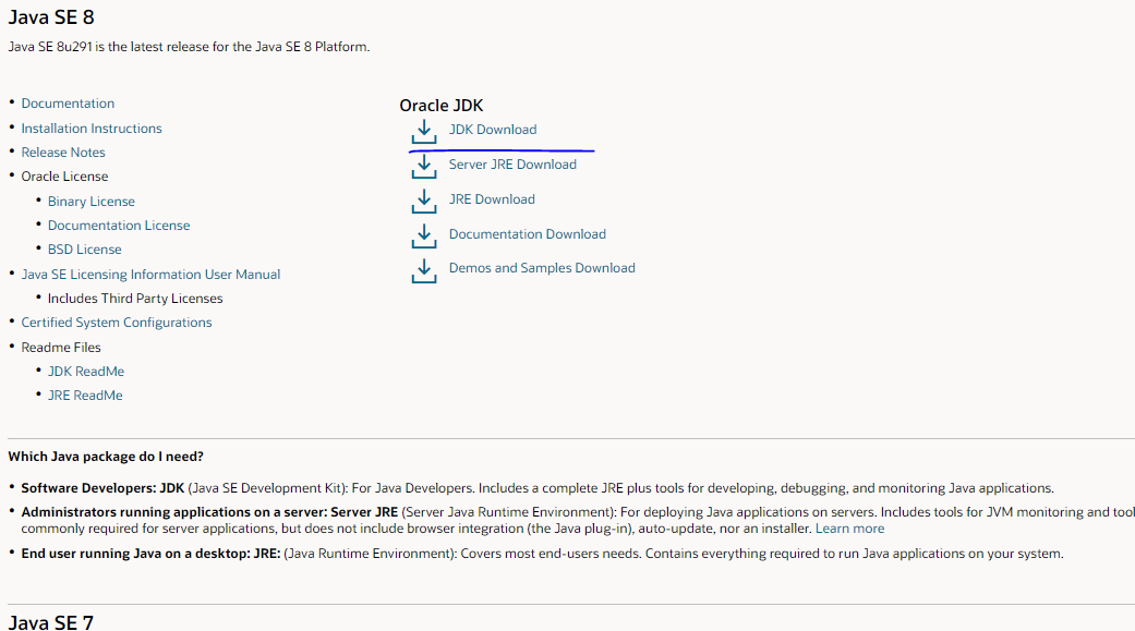 3. 스크롤을 내려 Java SE 8 JDK Downloads 클릭.
