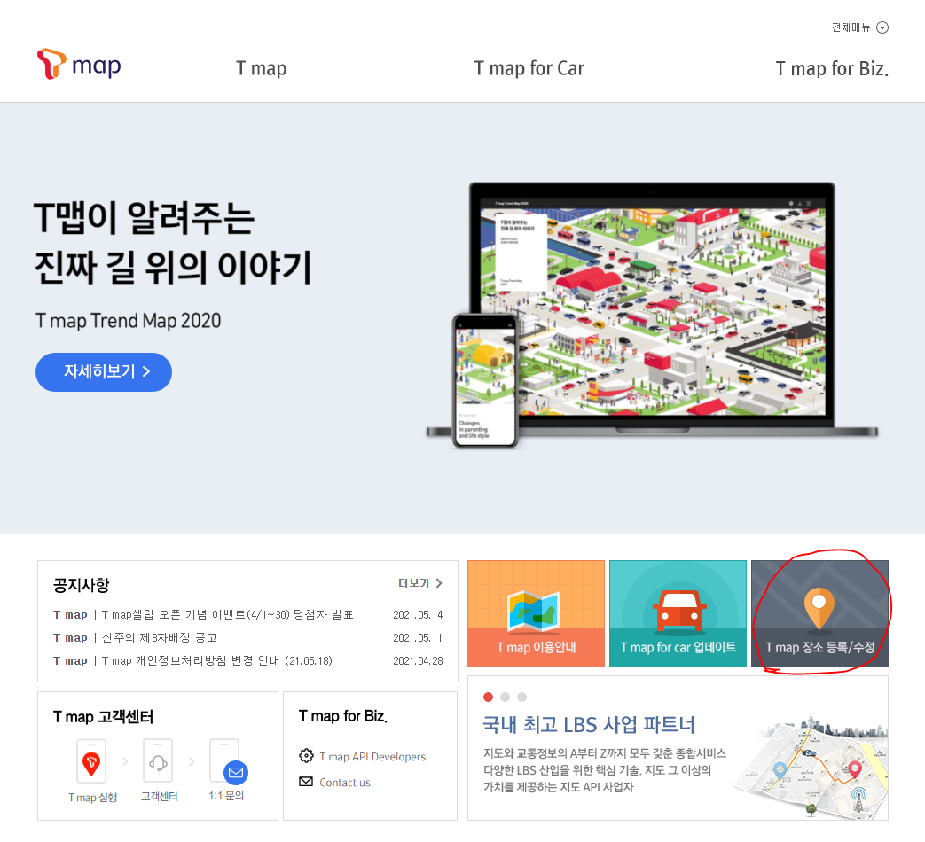 티맵에 등록되어있는지 확인을 위해 검색한다.