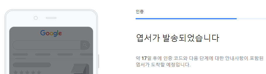 약 17일내에 우편으로 인증코드를 보내준다고 한다.