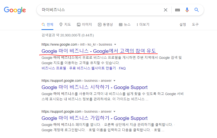 우선 구글 마이비즈니스 사이트에 접속한다.