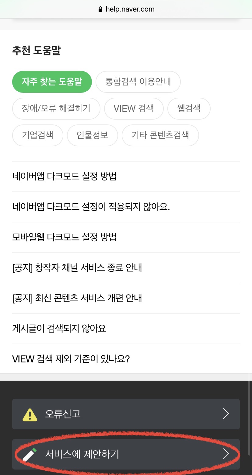 4.스크롤을 내려서 하단에 있는 서비스에 제안하기를 클릭