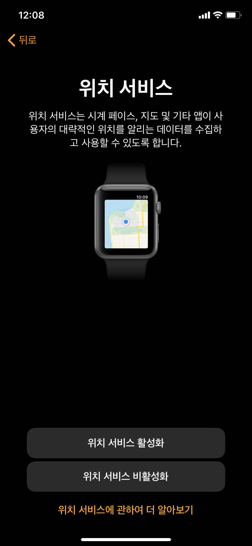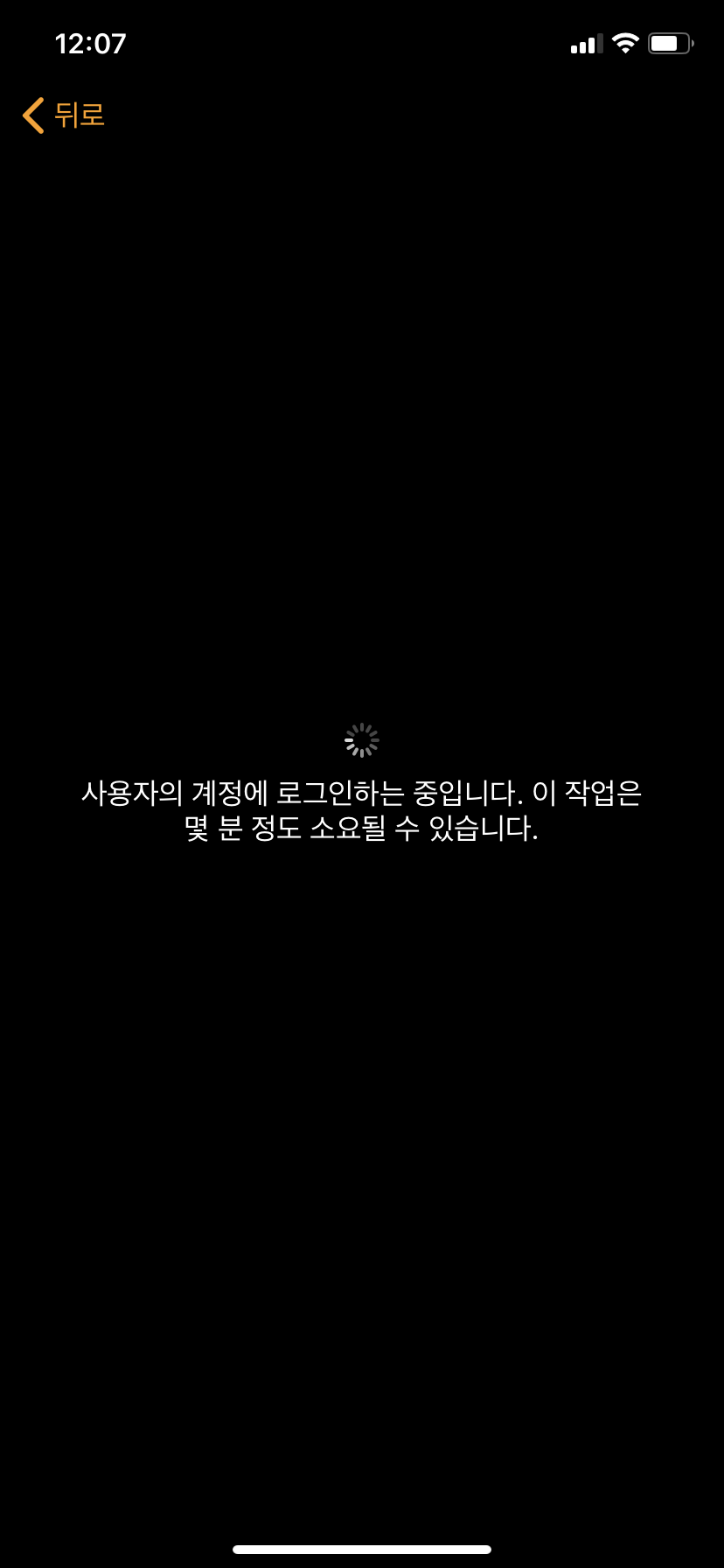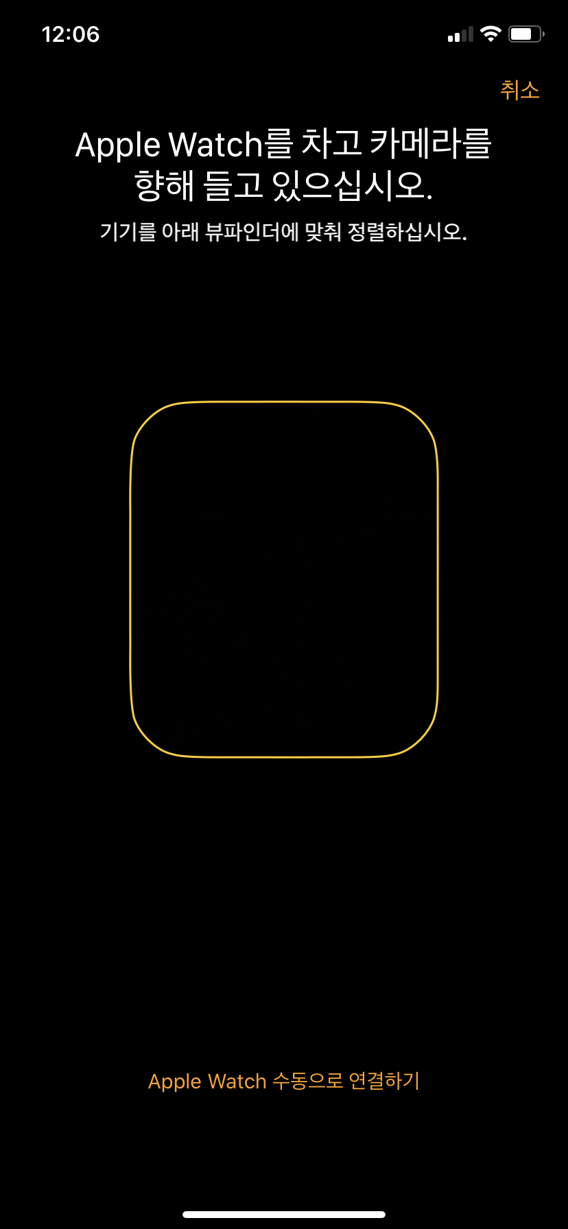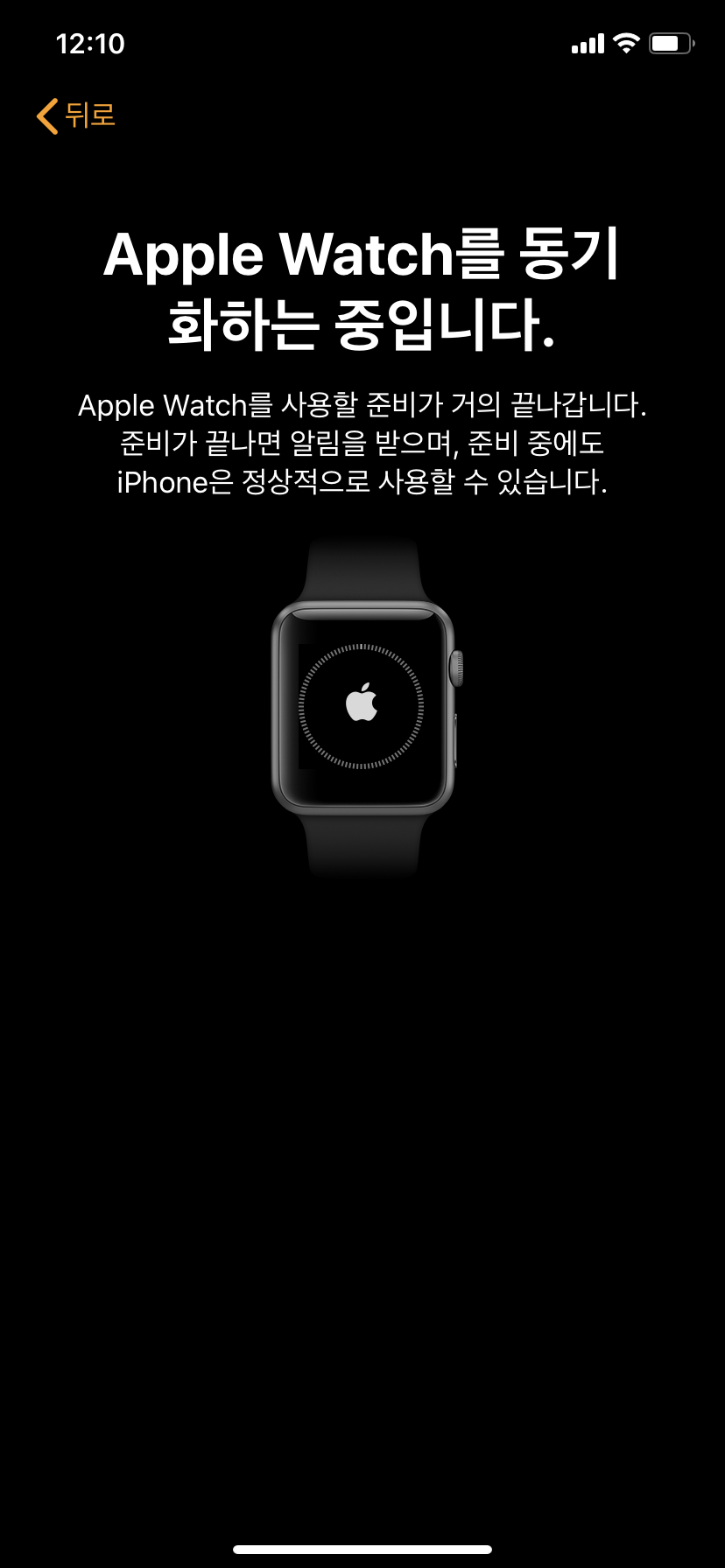 워치는 이런 화면을 나타내며 연결이 되기를 기다린다.