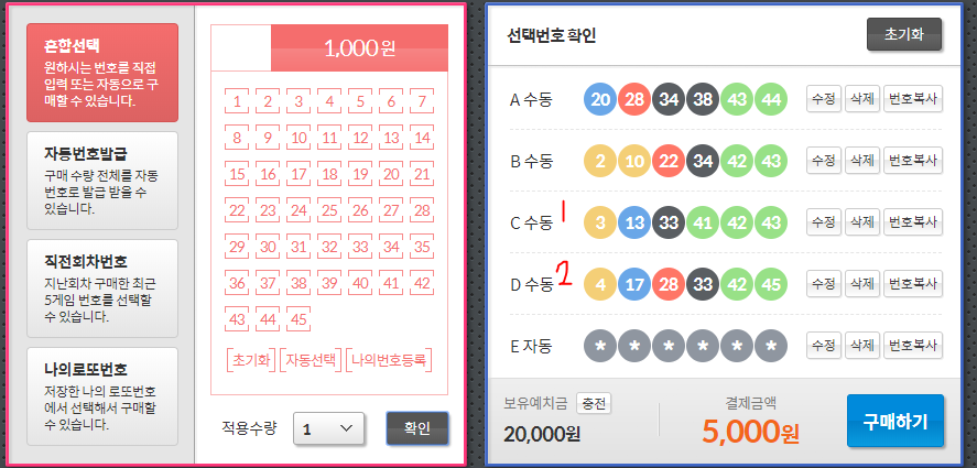 6. 구매모듈에서 번호를 선택하고 구매하면 완료.