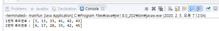 희망을 담고 내가 만든 로또프로그램을 돌려 2게임을 뽑았다.