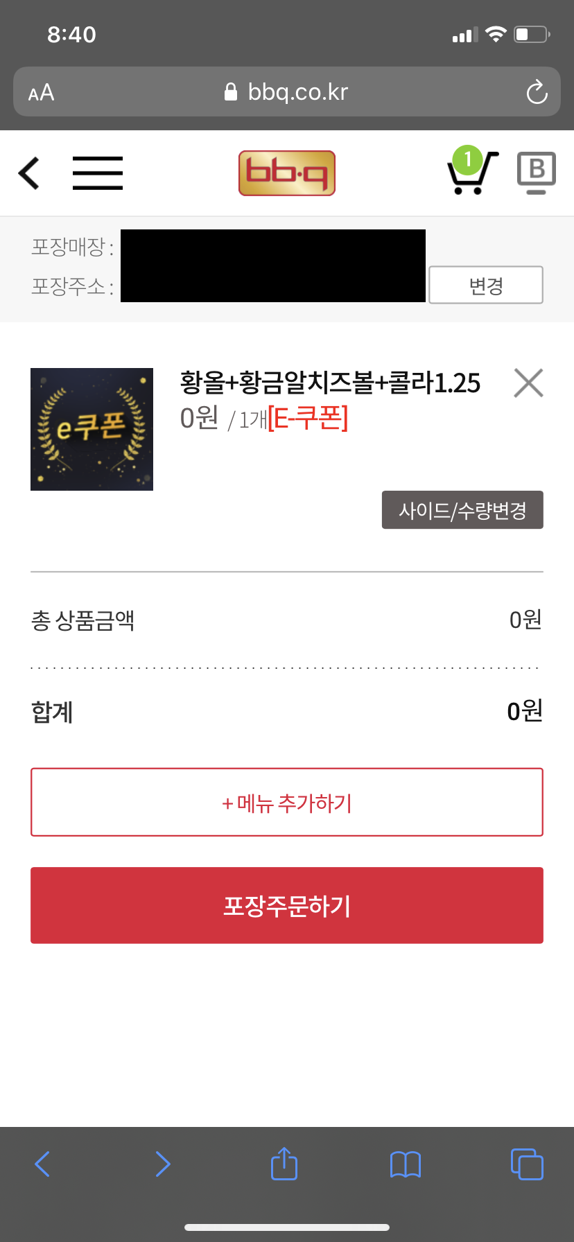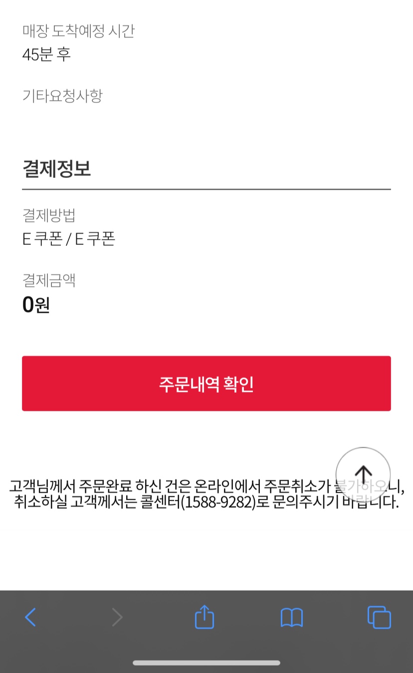 포장매장까지 선택하면 최종적으로 주문할 항목이 뜬다.