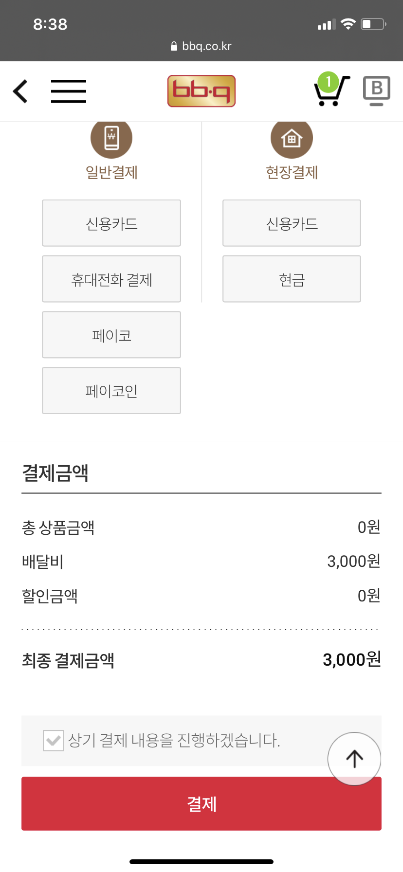 집가는길에 BBQ가 있어서 가는길에 들고가면되니까