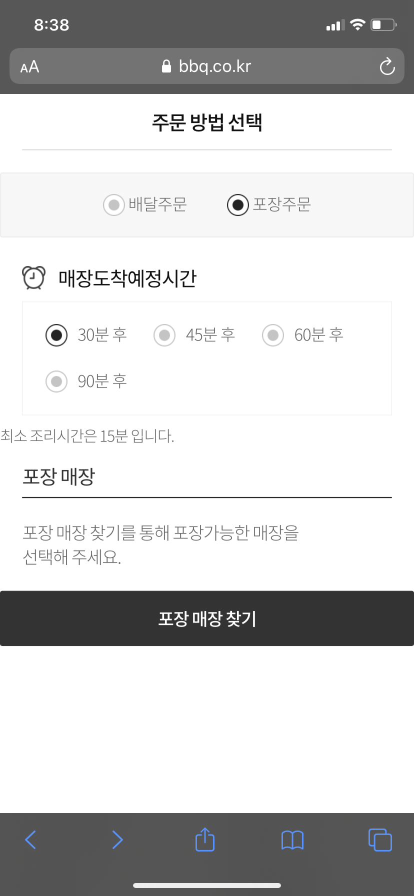 포장주문 시 매장도착 예정시간을 선택 할 수 있다.