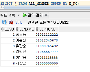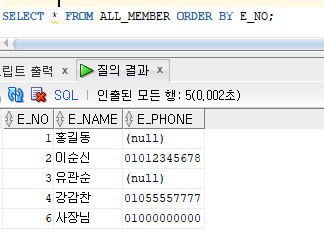 모든직원 테이블에 누락되어있던 '홍길동', '유관순'의 전화번호가 UPDATE되었고