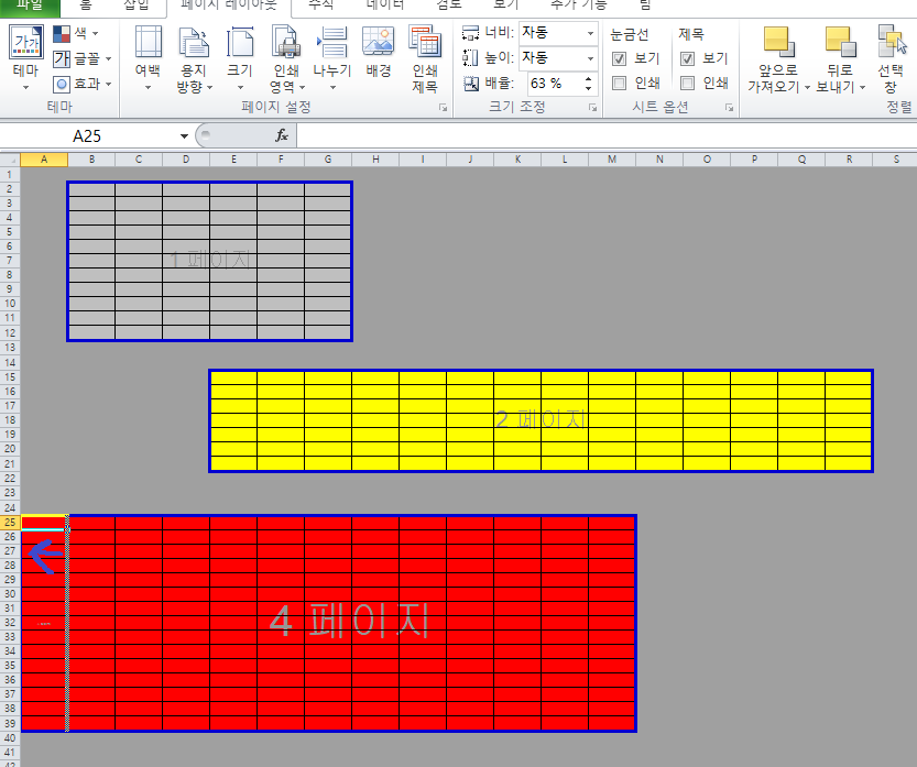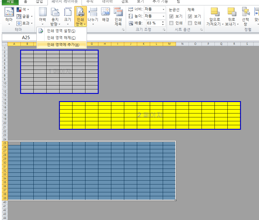 했더니 왼쪽 A25:A39 영역이 3페이지