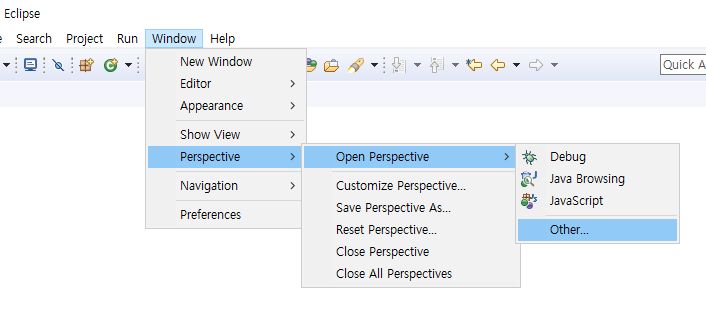 이클립스에서 [Window] -> [Show View] ->